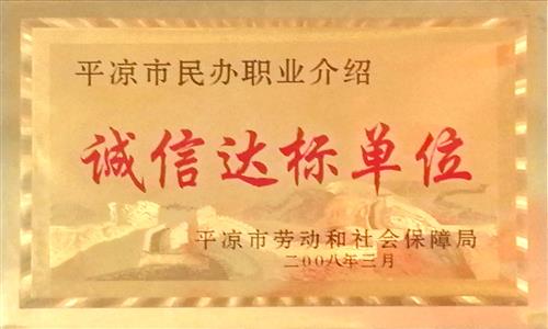 2008年公司職業(yè)介紹所被平?jīng)鍪袆趧雍蜕鐣U暇衷u為“誠信達標(biāo)單位”;
